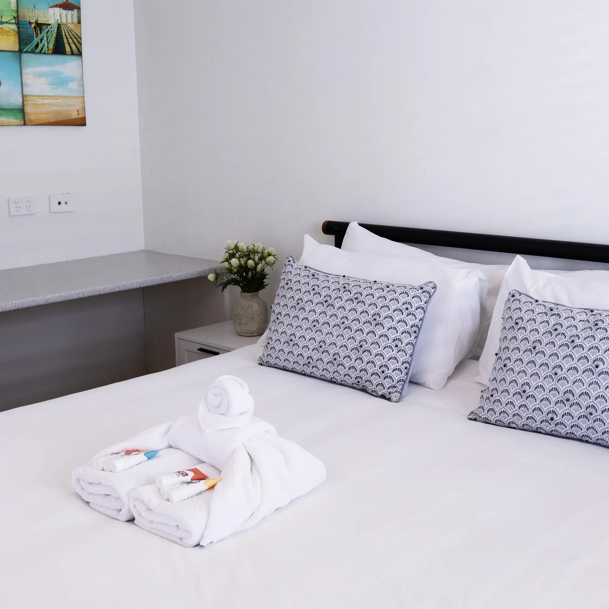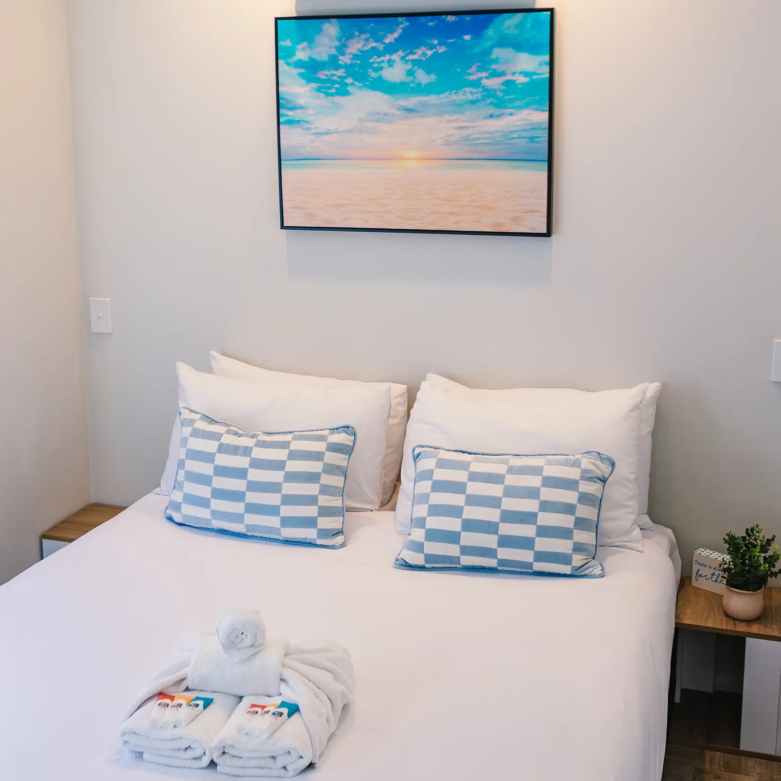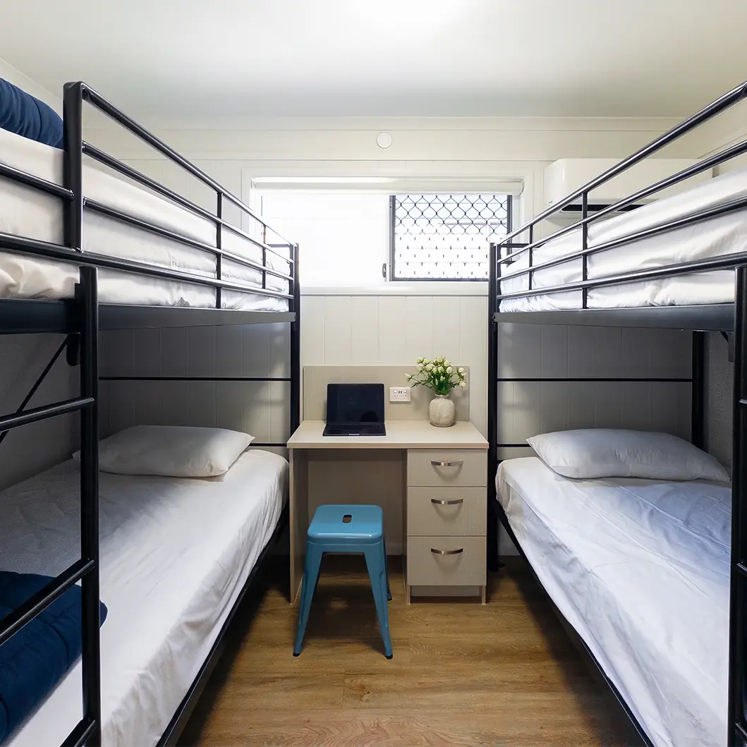 2 bedrooms (Queen + King single bunks)
