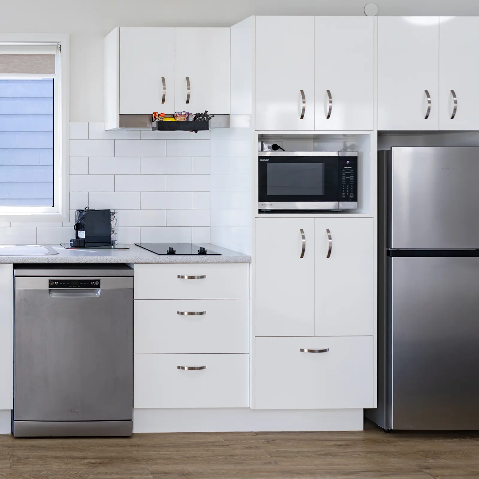 Fridge, cooktop, microwave, dishwasher & pod coffee maker