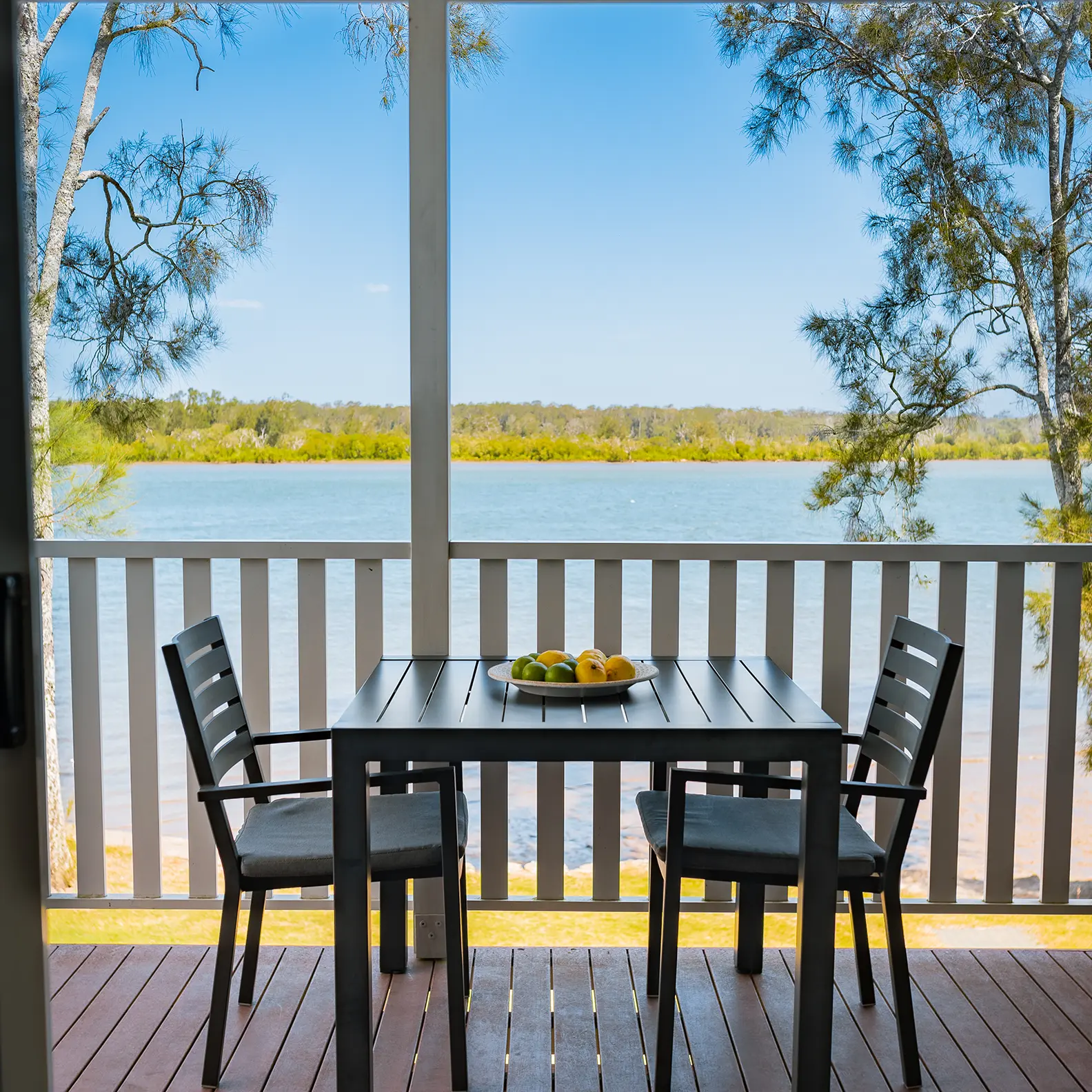 Private deck with river views & outdoor dining