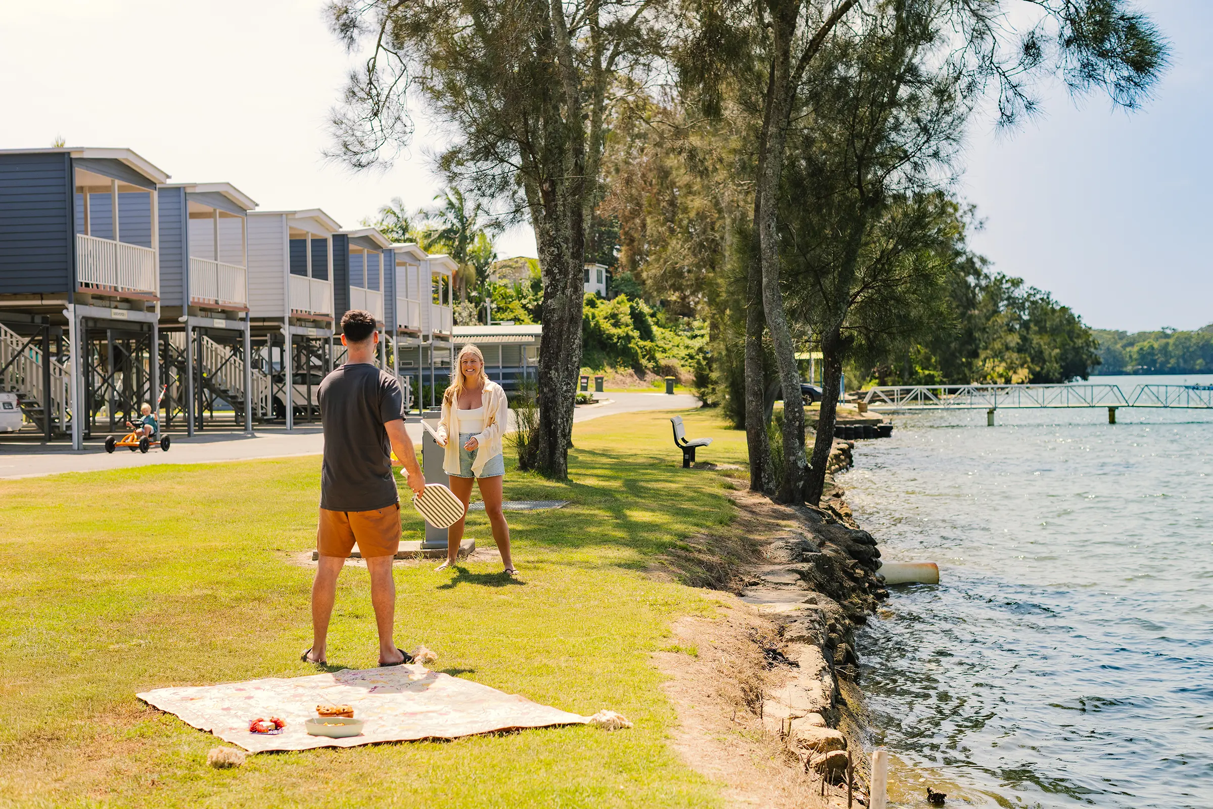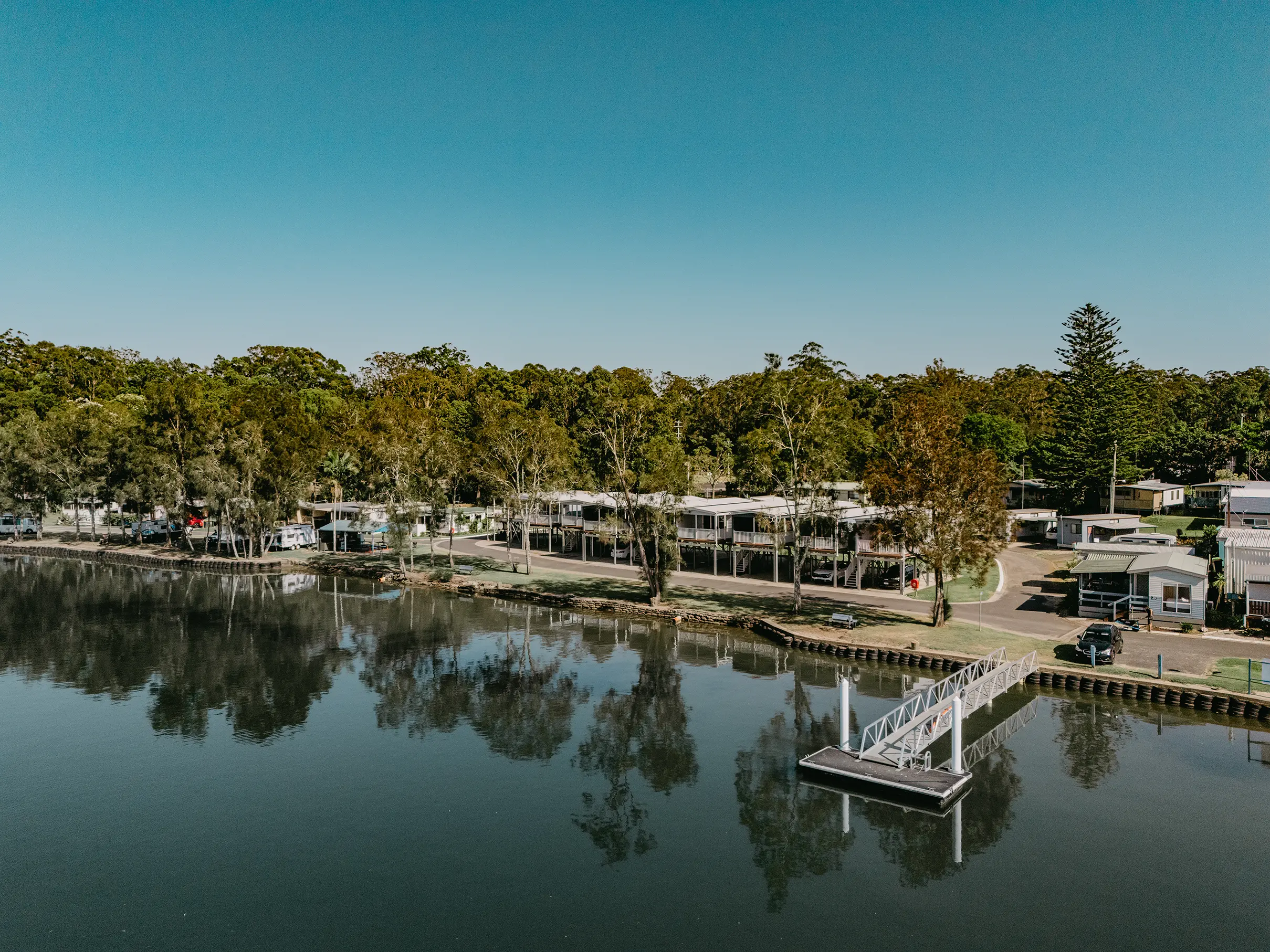 Set on the tranquil Nambucca River, Pelican Holiday Park offers riverfront cabins, powered sites (some right on the water), and everything you need for a laid-back getaway — including a private boat ramp, jetty, pontoon, pool, riverside camp kitchen, and free WiFi.